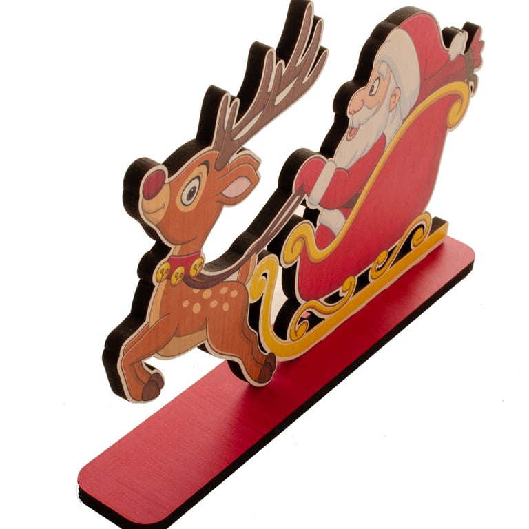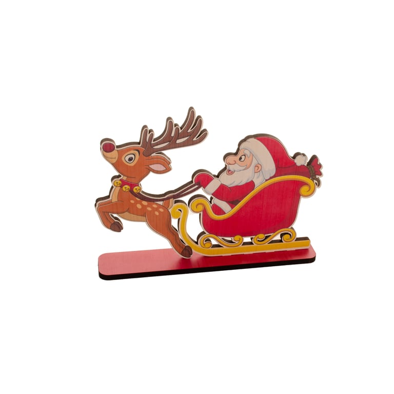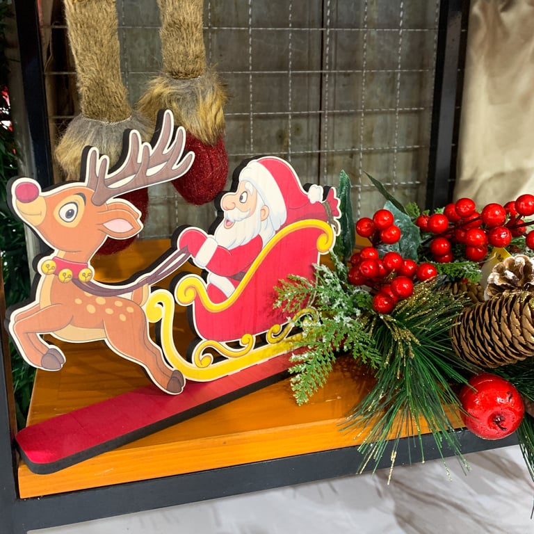 PAPAI NOEL NO TRENÓ MADEIRA 17X22X4 CM COM RENA