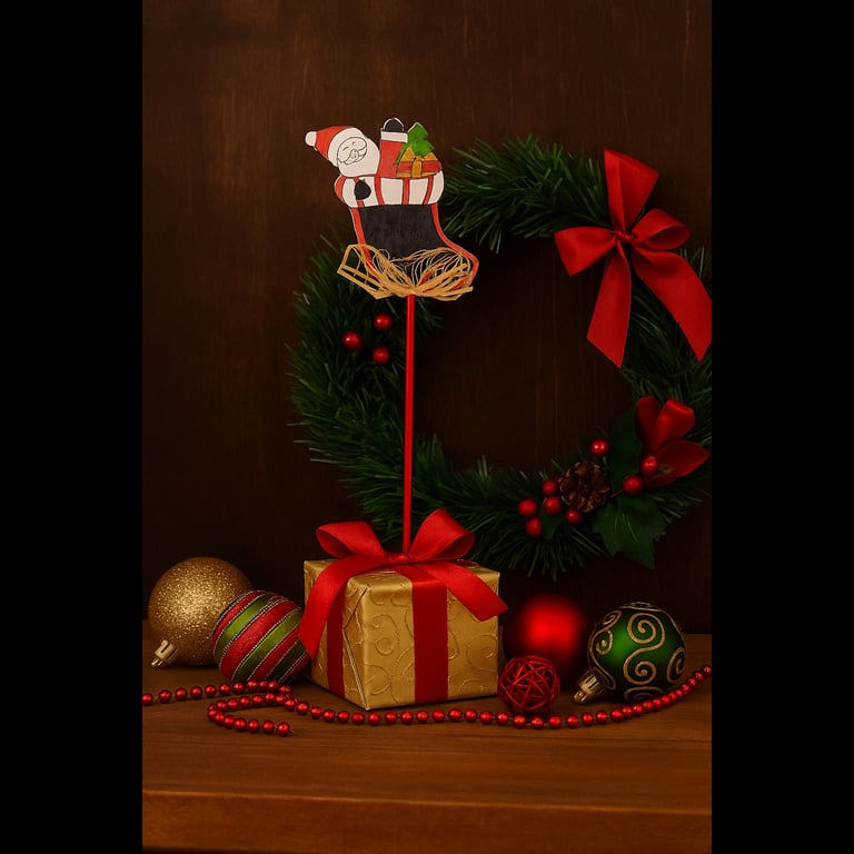 PAPAI NOEL / RENA 26 CM QUADRO NEGRO COM ESPETO