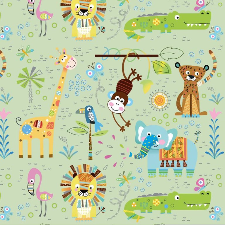 635: VERDE CLARO COM ANIMAIS/JACARÉ/LEÃO