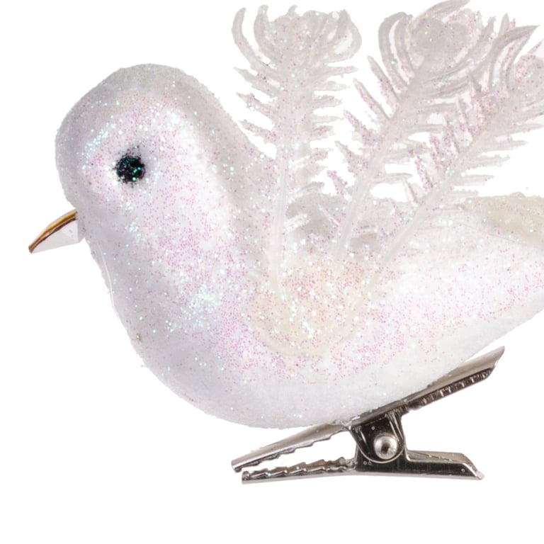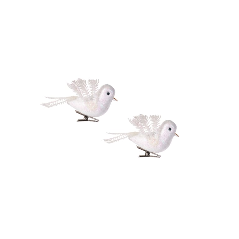 PÁSSARO 4X8 CM 2 PEÇAS BRANCO GLITTER COM PRESILHA