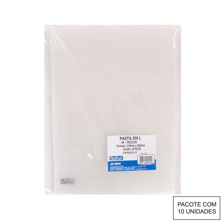 PASTA PLÁSTICA A4 30,6X21,8 CM EM L TRANSPARENTE