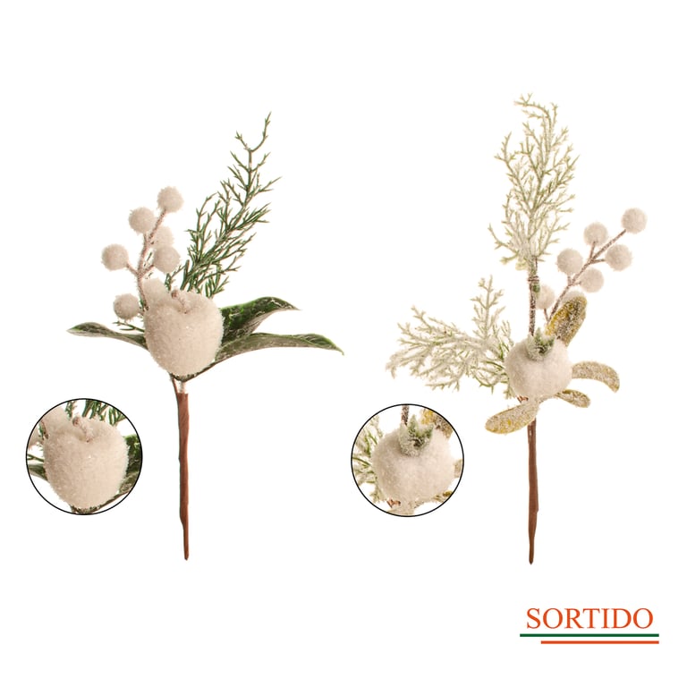 PICK NEVADO MAÇÃ / ROMÃ 25 CM COM SEMENTES BRANCO