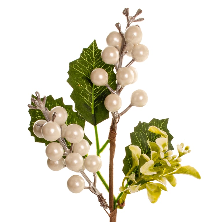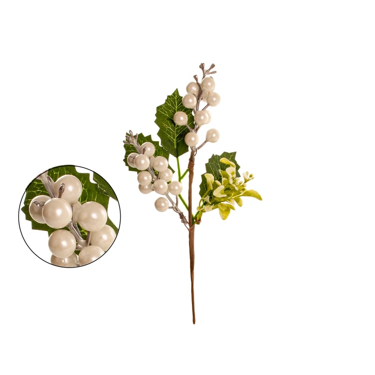 PICK SEMENTES PEROLIZADAS 28 CM BRANCA COM FOLHAS