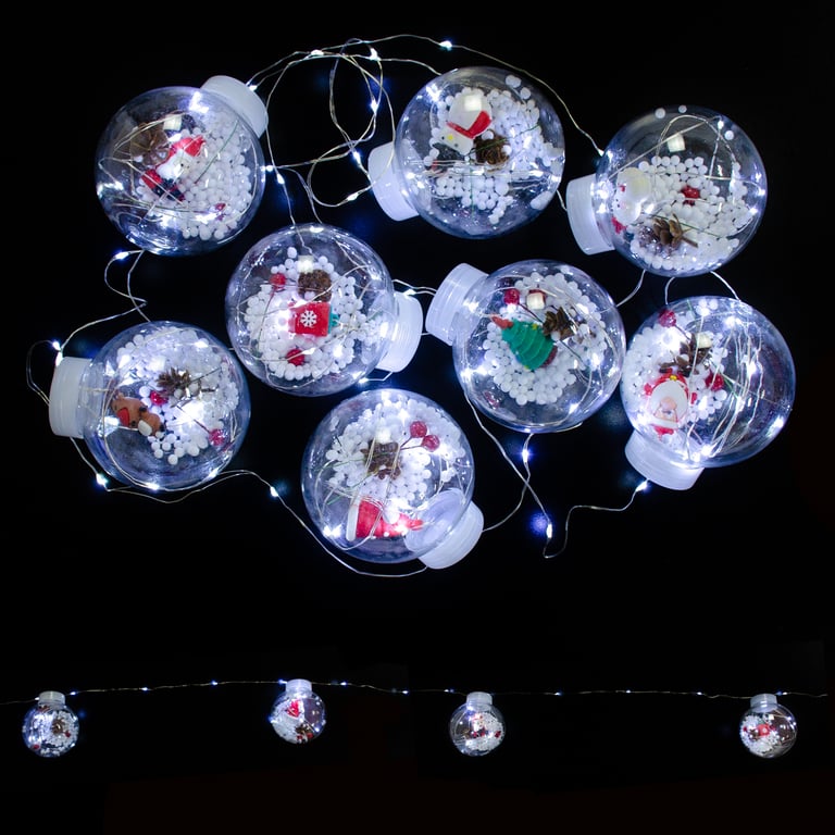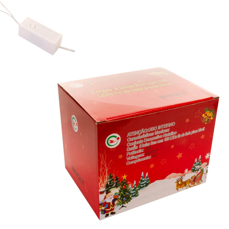 Observações POTÊNCIA: 3 W, BIVOLT, CONTÉM 8 BOLAS COM FIGURAS NATALINAS. FIO DE FADA TRANSPARENTE.