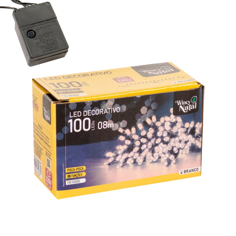 PISCA 100 LEDS BRANCO FRIO 8 F 8 M FIO VERDE 220 V