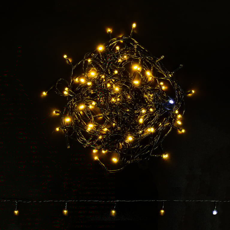 PISCA 100 LEDS FIXO BRANCO QUENTE COM 20 FLASH / STROBO BRANCO FRIO 10 M MACHO / FÊMEA FIO VERDE 220V