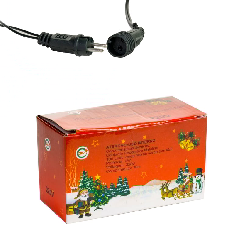 PISCA 100 LEDS VERDE FIXO MACHO / FÊMEA 10 M FIO VERDE 220V