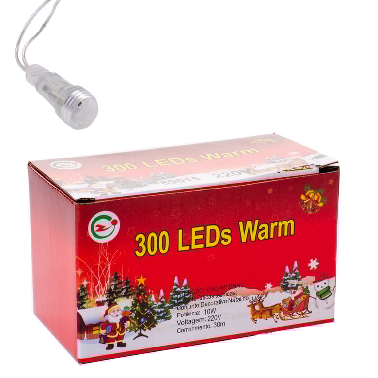 PISCA 300 LEDS BRANCO QUENTE FIXO MACHO / FÊMEA 30 M FIO TRANSPARENTE 220V