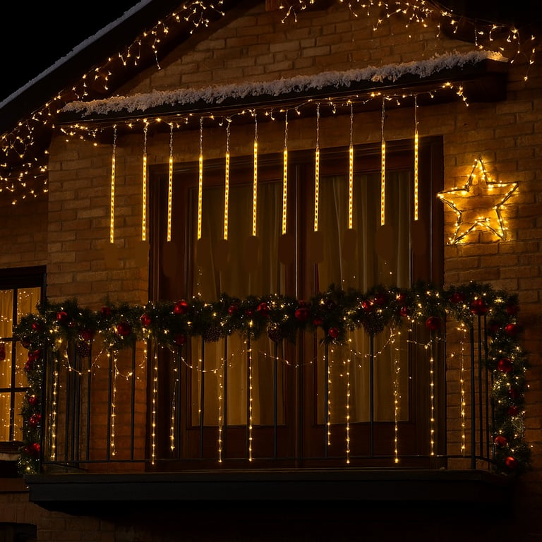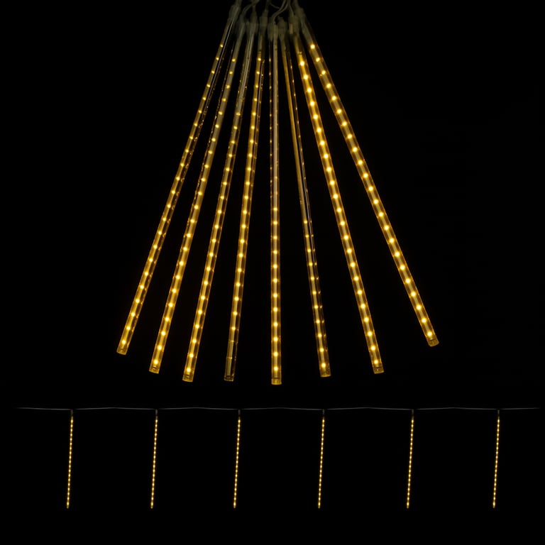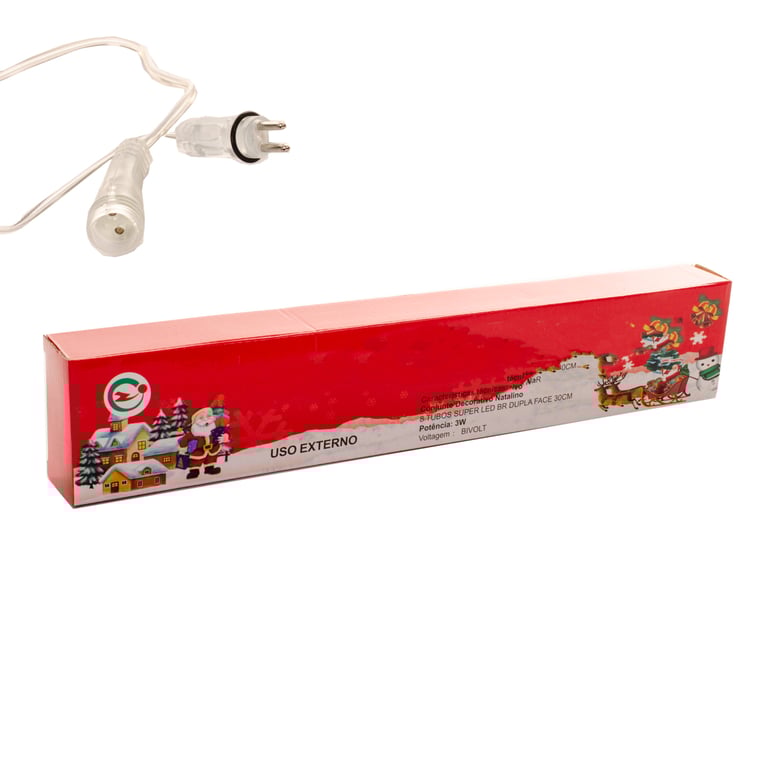 PISCA 8 TUBOS 50 CM BRANCO QUENTE SEQUÊNCIAL MACHO / FÊMEA DUPLA FACE 3 M FIO TRANSPARENTE BIVOLT EXTERNO