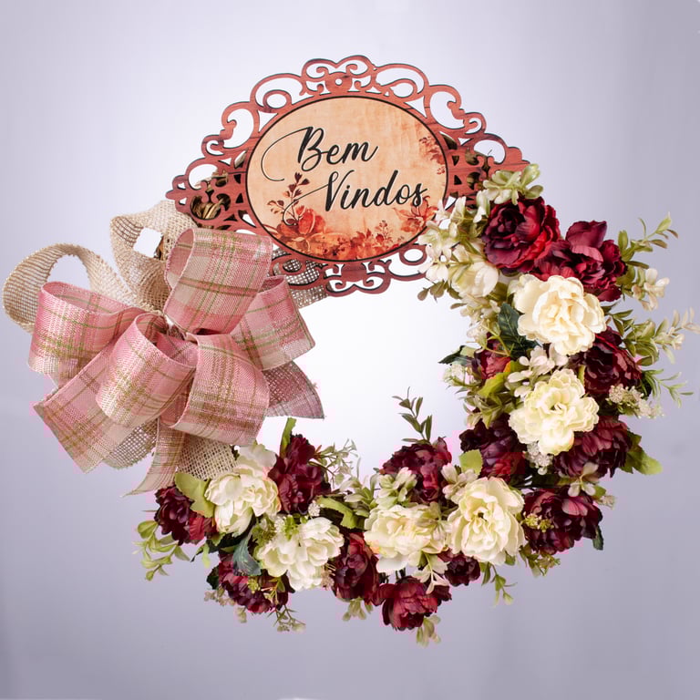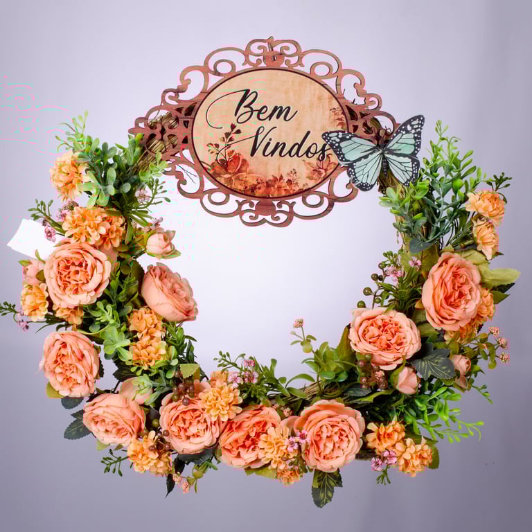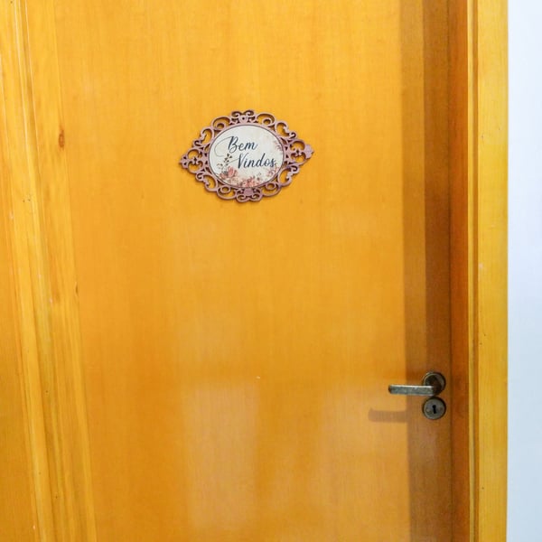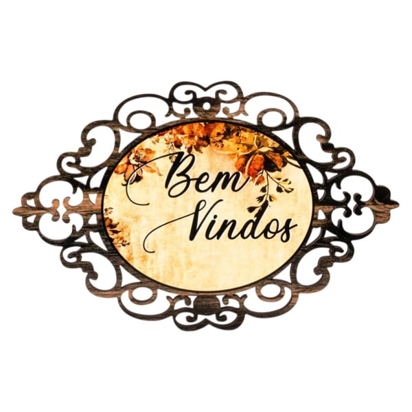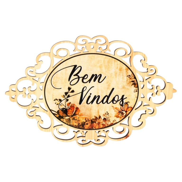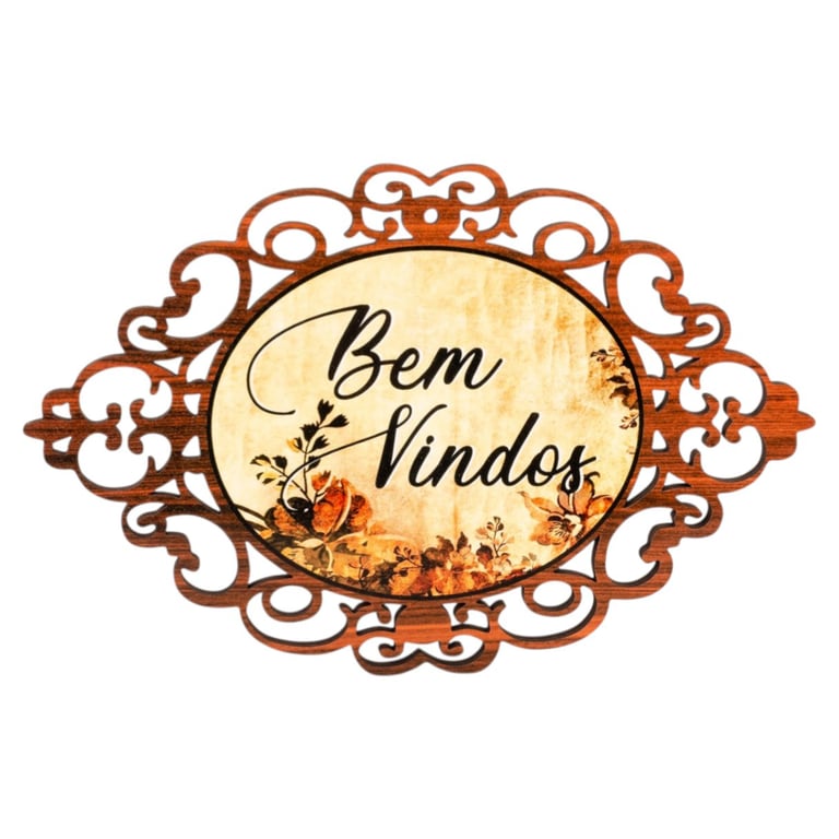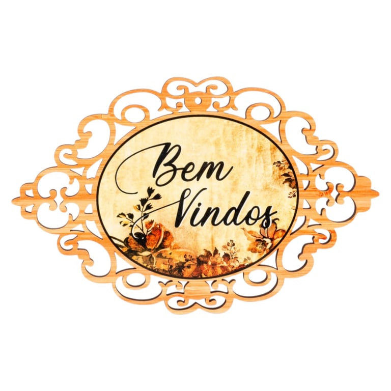 PLACA BEM VINDOS 18X27 CM MADEIRA ARABESCO