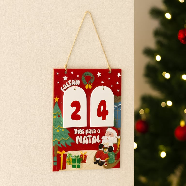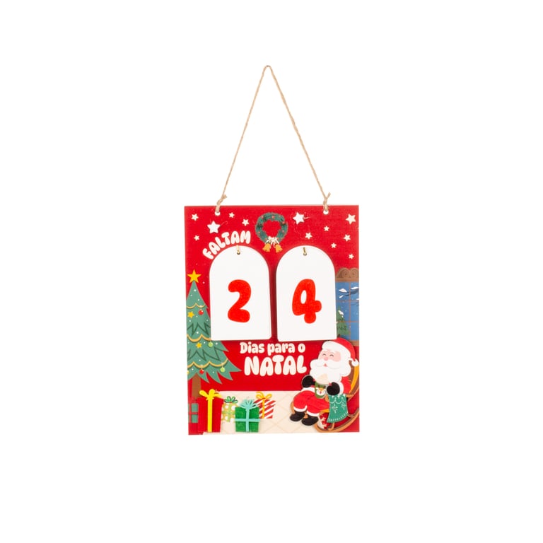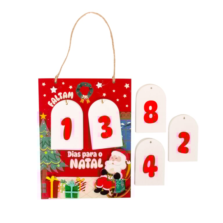 ACOMPANHA 6 PLACAS DUPLA FACE COM OS NÚMEROS PARA MARCAR OS DIAS QUE FALTAM PARA O NATAL.