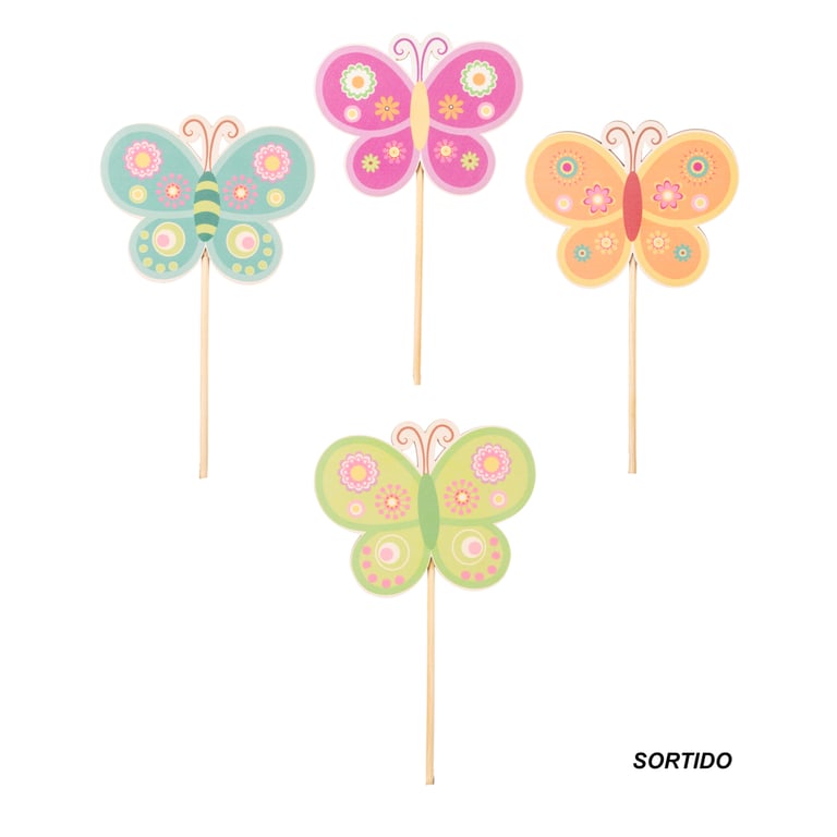 PLACA DECORATIVA 20X11 CM BORBOLETA COLORIDA ESPETO MDF