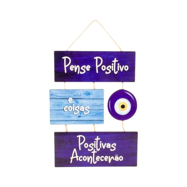 PLACA DECORATIVA TRIPLA 28X20 CM OLHO GREGO MADEIRA