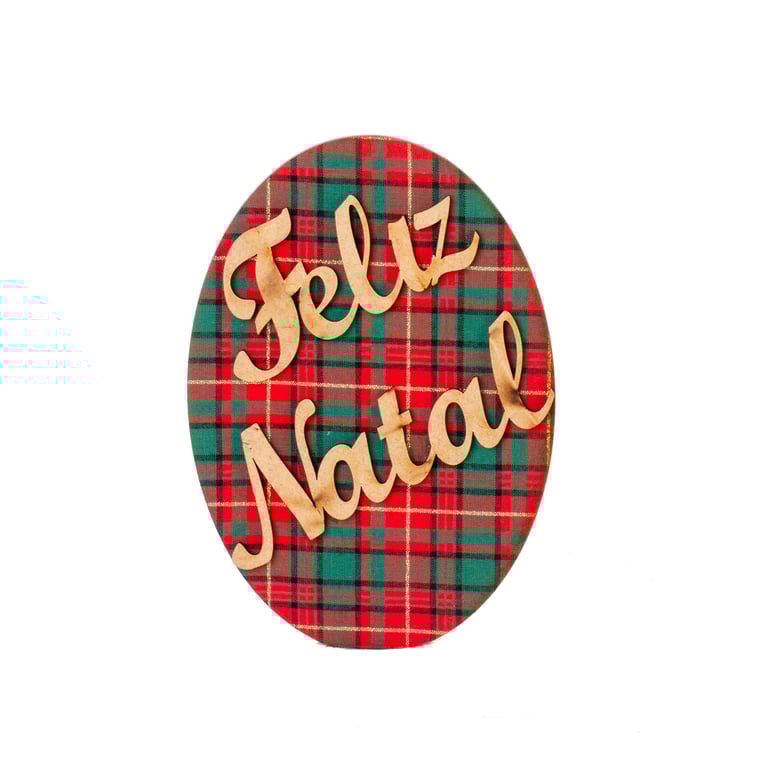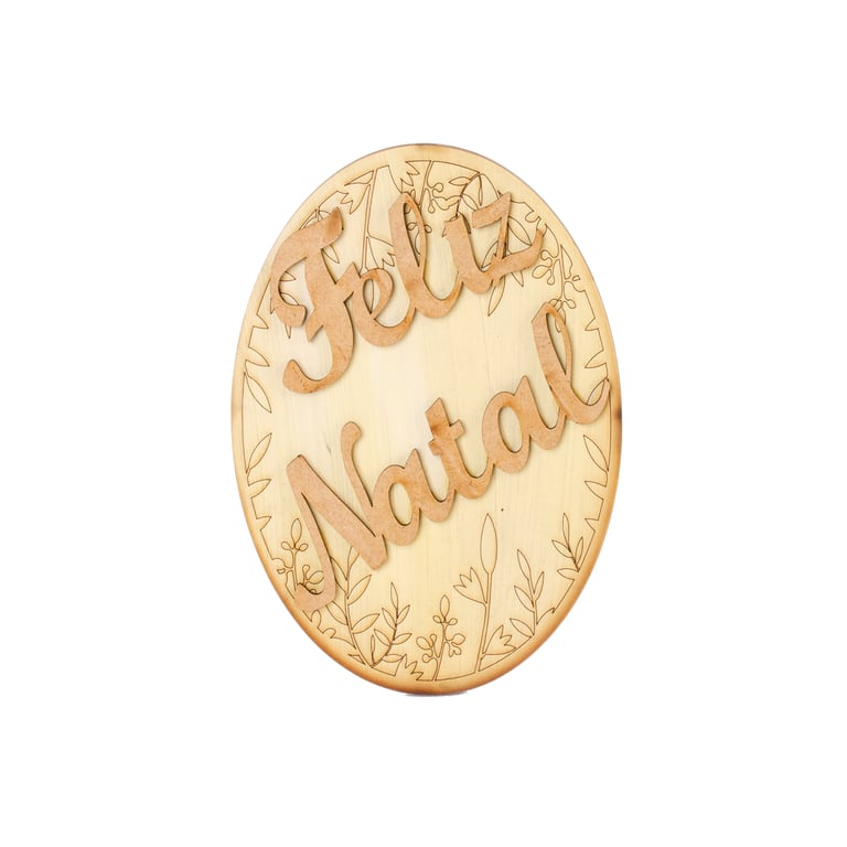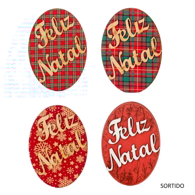 PLACA FELIZ NATAL 18X13 CM OVAL MDF