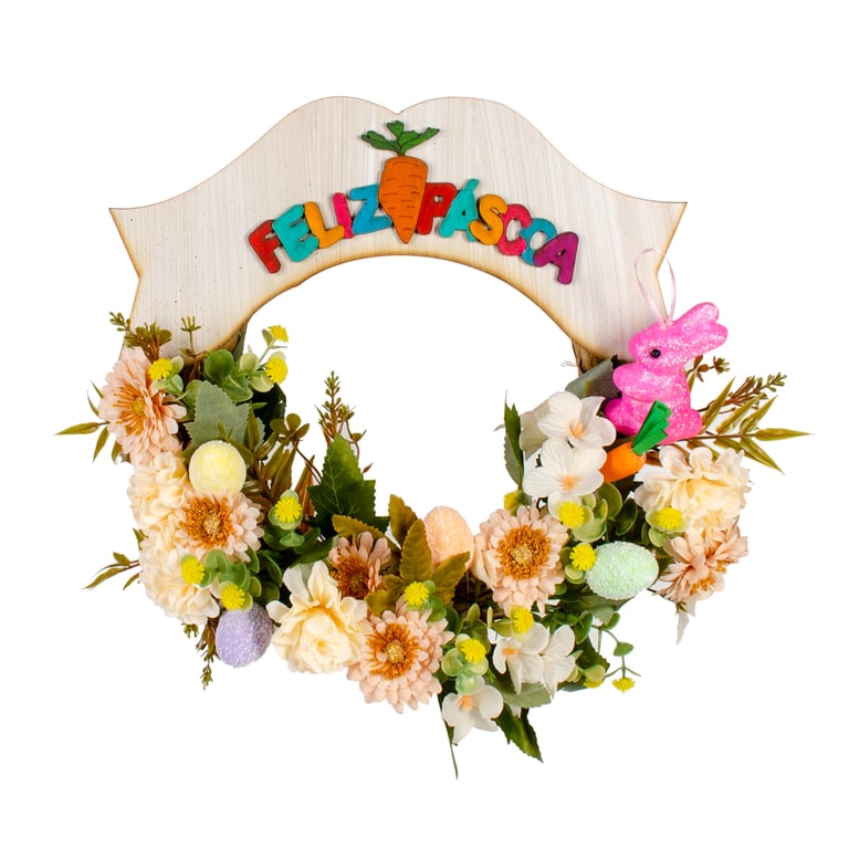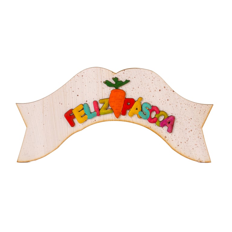 PLACA FELIZ PÁSCOA 14X30 CM MDF COLORIDA