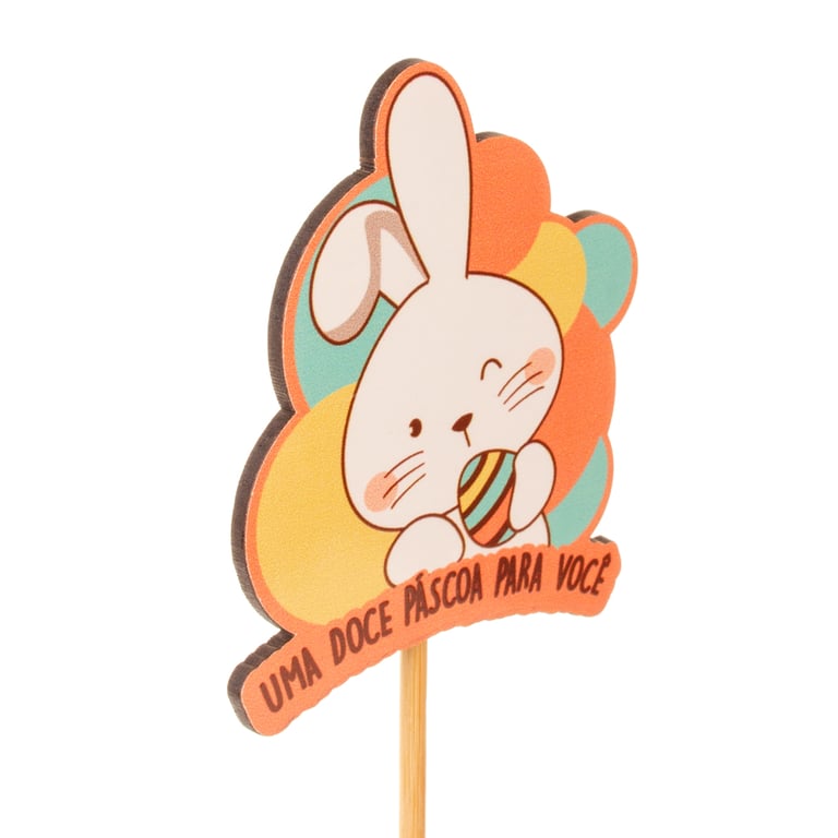 PLACA MADEIRA 33X7,5 CM DOCE PÁSCOA COELHO COM PALITO