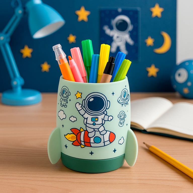 PORTA CANETA PLÁSTICO 10X10 CM FOGUETE ASTRONAUTA