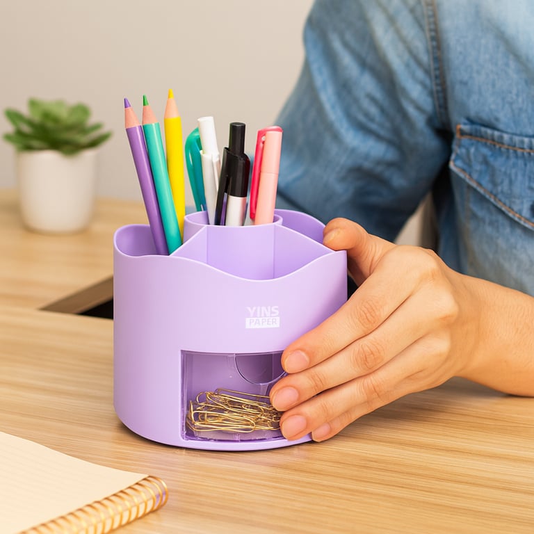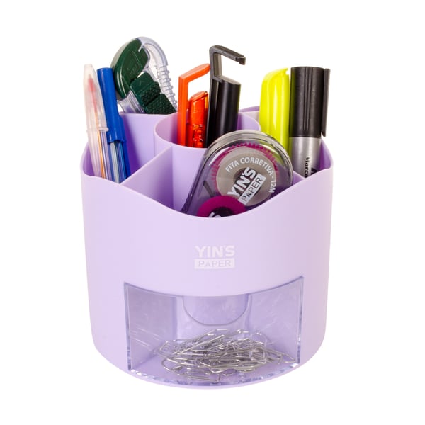 PORTA CANETA PLÁSTICO 12,2X12,6 CM 6 DIVISÓRIAS GIRATÓRIO