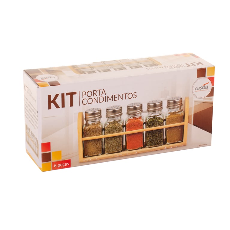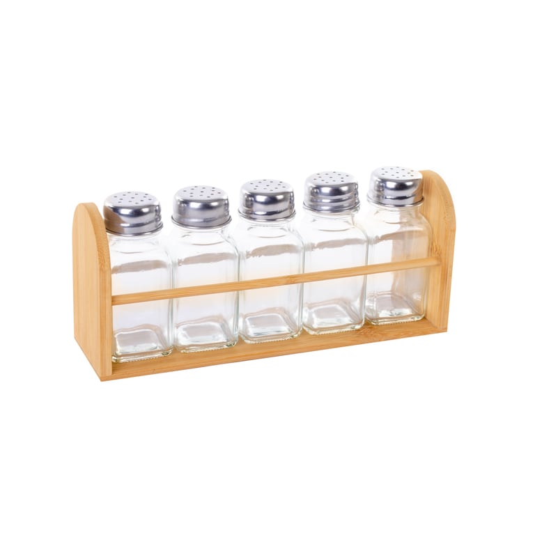 PORTA CONDIMENTOS VIDRO 6 PEÇAS 80 ML SUPORTE BAMBU