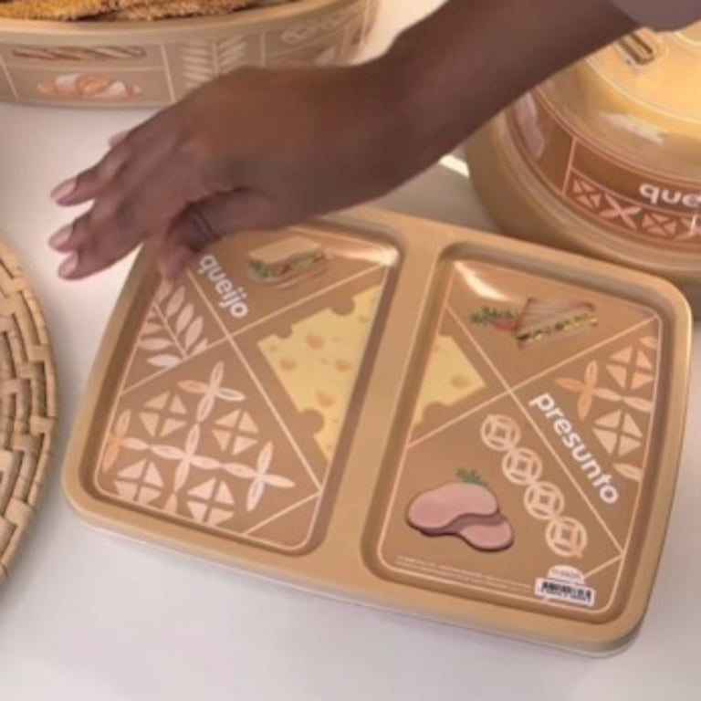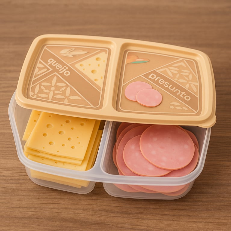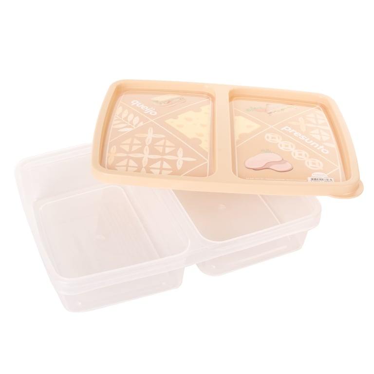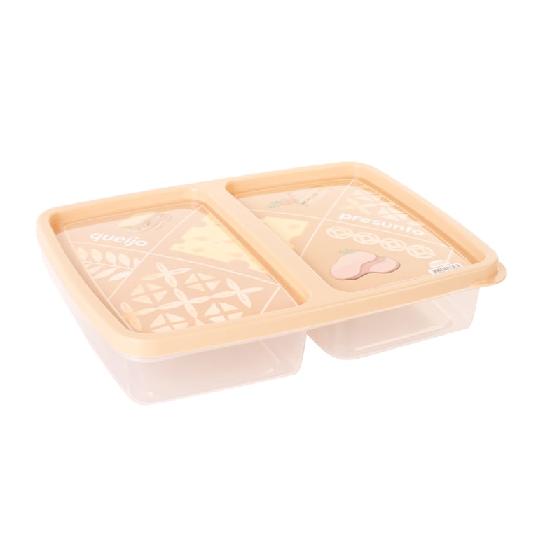 PORTA FRIOS PLÁSTICO 1,1 L COM DIVISÓRIA BEGE DECORADO