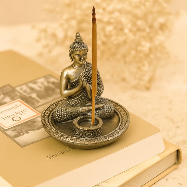 PORTA INCENSO RESINA 8X8X8 CM BUDA BRONZE