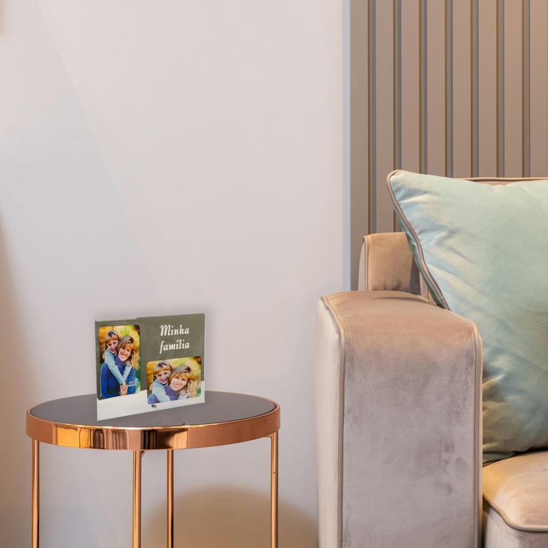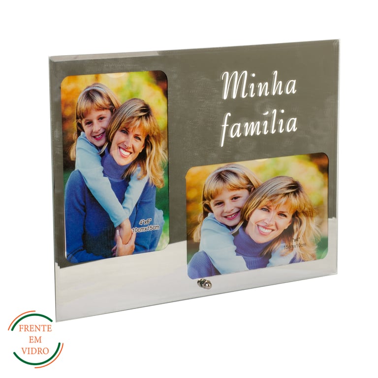 PORTA RETRATO 10X15 VIDRO ESPELHADO 2 FOTOS MINHA FAMÍLIA