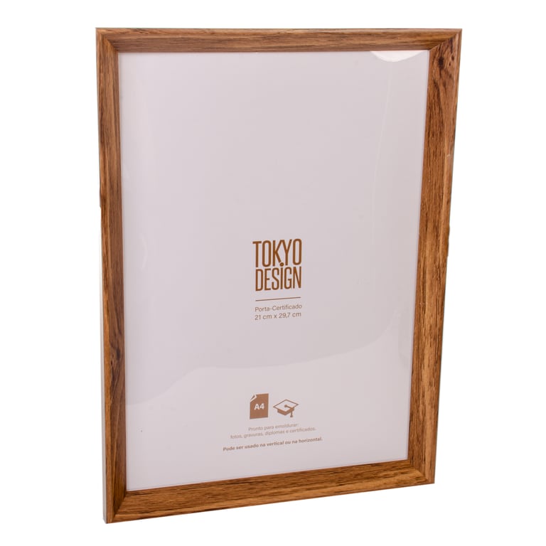 PORTA RETRATO 21X29,7 PLÁSTICO A4 BORDA MARROM VERTICAL / HORIZONTAL