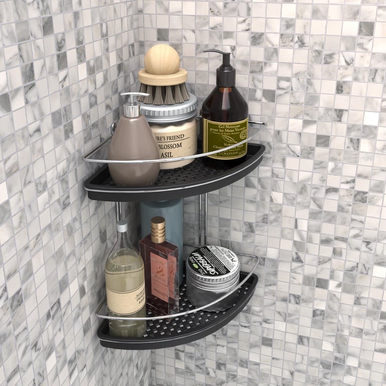 PORTA SHAMPOO 31X28X19 CM CANTONEIRA DUPLA COM SUPORTE ARAMADO