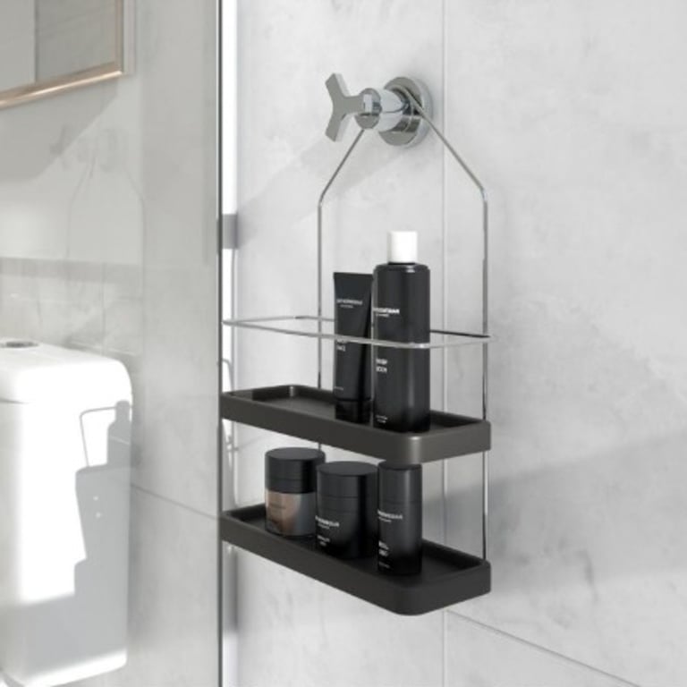 PORTA SHAMPOO 42X25X10 CM ARAMADO CROMADO COM BANDEJAS