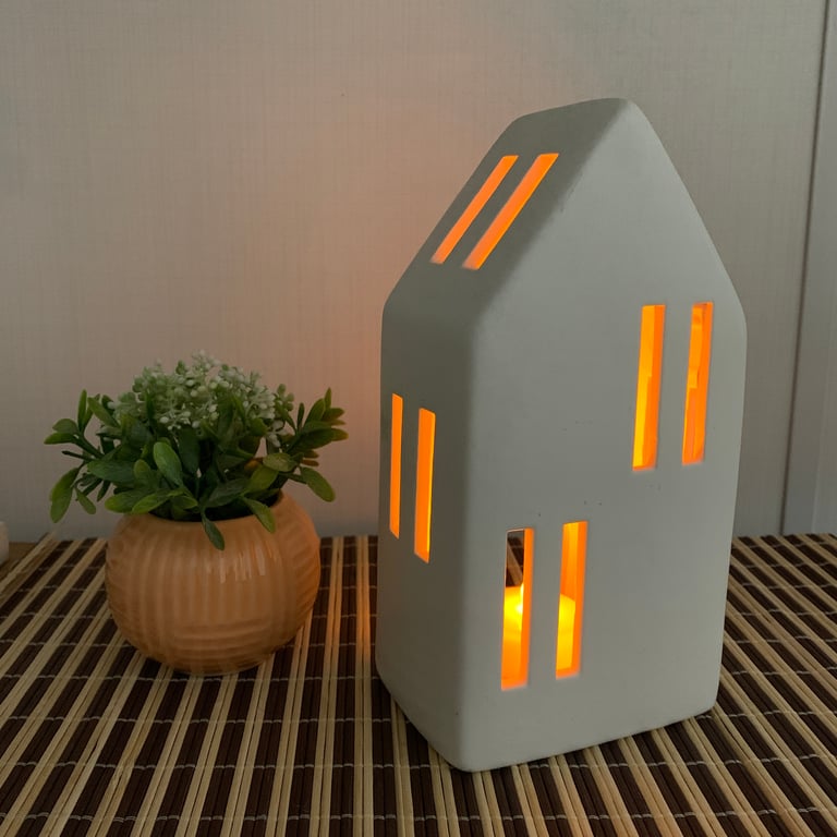 PORTA VELA / CASTIÇAL 20X10X7,5 CM CASA CERÂMICA LUMINÁRIA