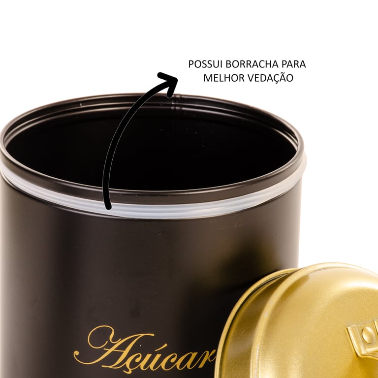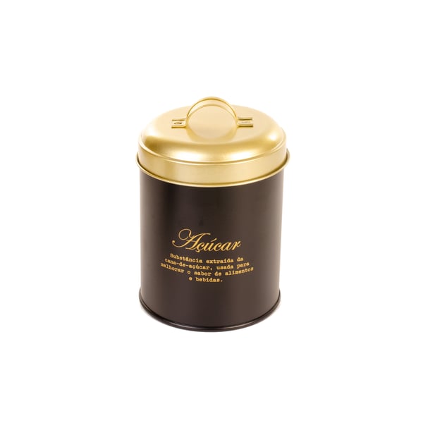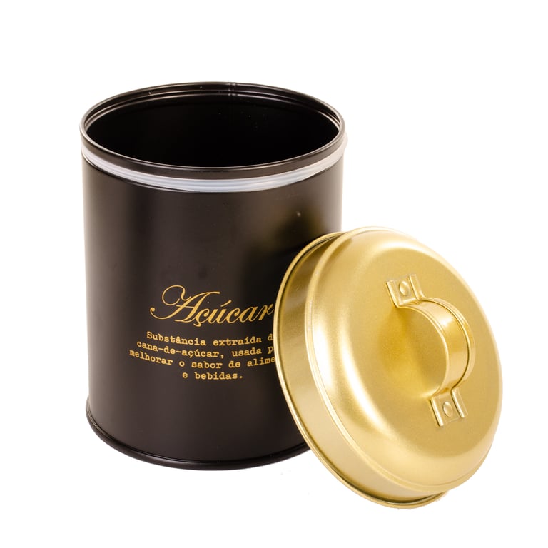 POTE LATA 13,5X11 CM AÇÚCAR REDONDO PRETO / DOURADO