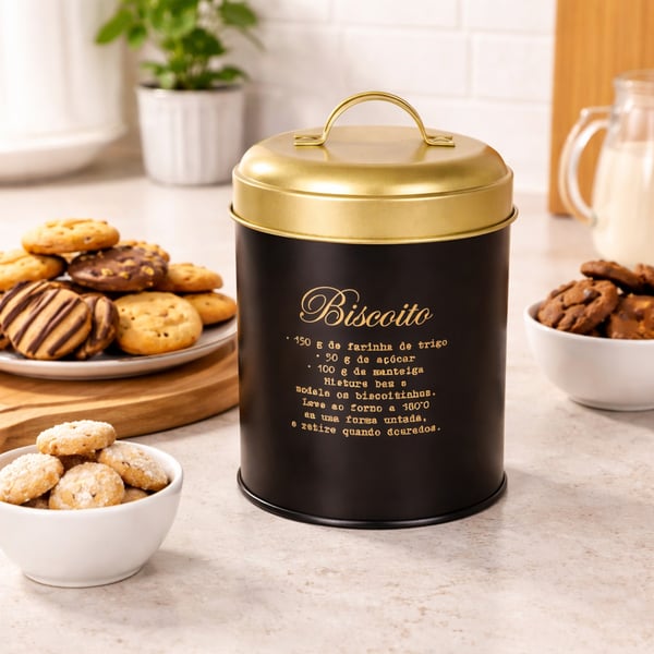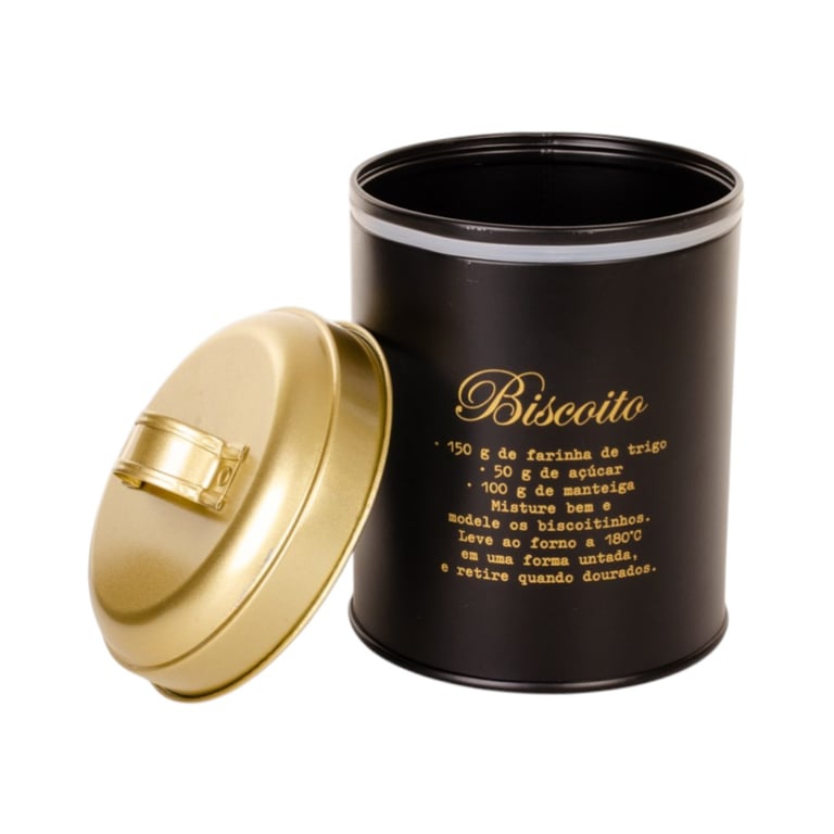 POTE LATA 13,5X11 CM BISCOITO REDONDO PRETO / DOURADO
