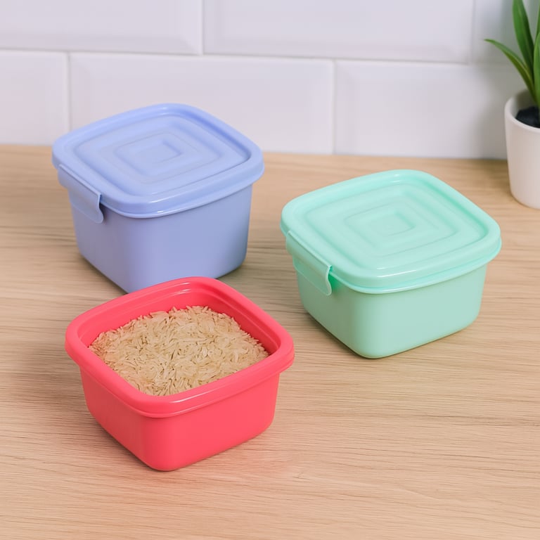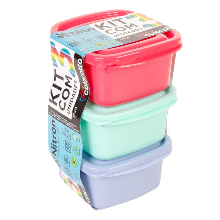 POTE PLÁSTICO 3 PEÇAS 360 ML QUADRADO COM TRAVA
