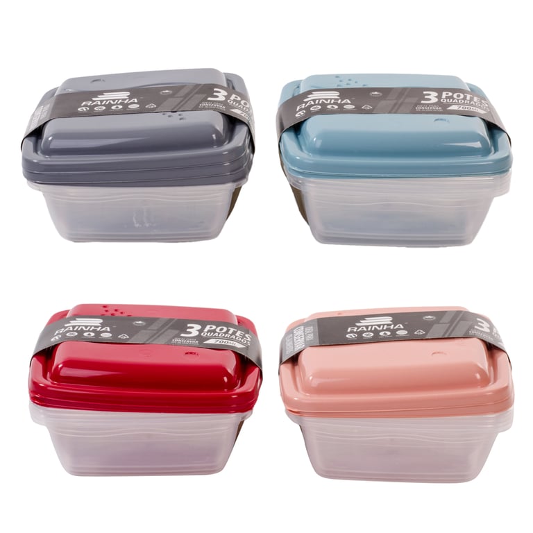 POTE PLÁSTICO 3 PEÇAS 700 ML QUADRADO