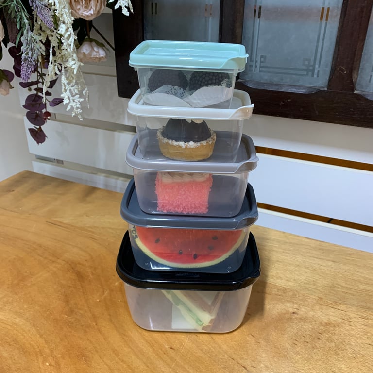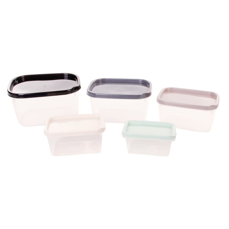 POTE PLÁSTICO 5 PEÇAS RETANGULAR TAMPA COLORIDA