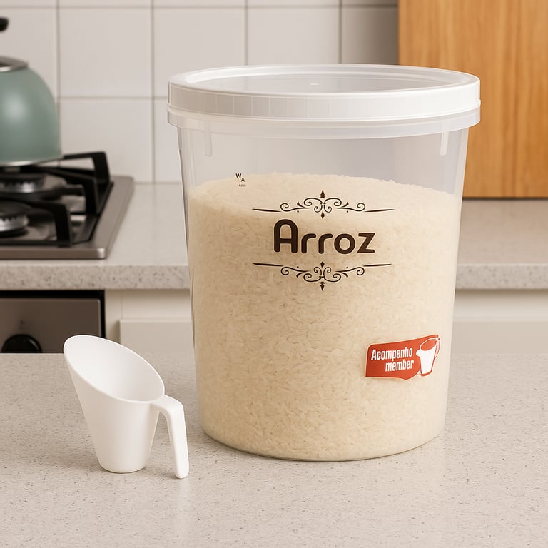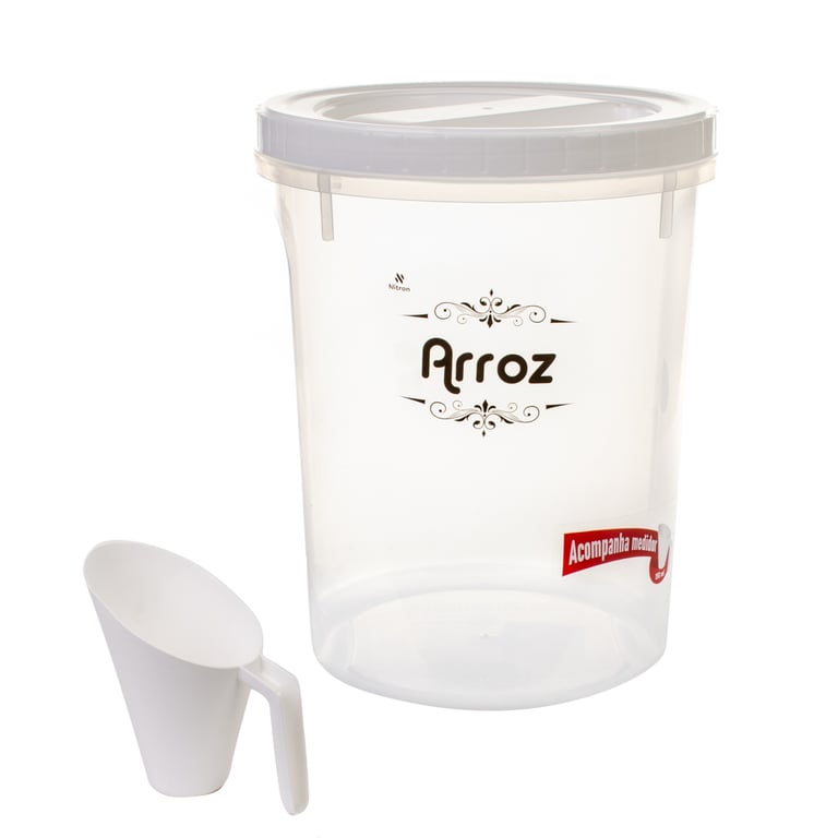 POTE PLÁSTICO ARROZ 5,8 L TAMPA ROSCA COM CONCHA MEDIDORA