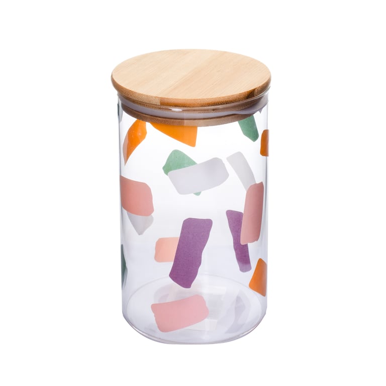 POTE VIDRO 1 L HERMÉTICO TAMPA BAMBU DECORADO