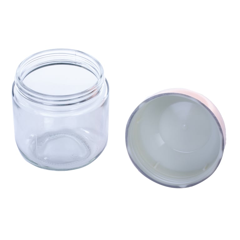 Composição POTE EM VIDRO E TAMPA PLÁSTICA.