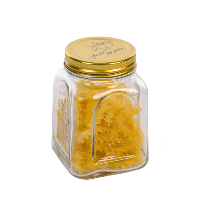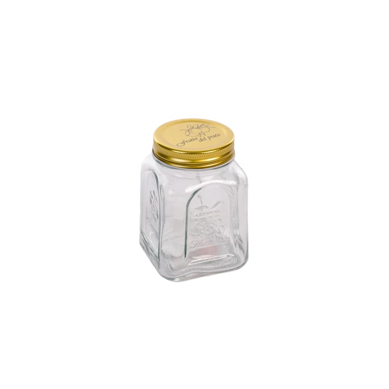 Composição POTE EM VIDRO E TAMPA EM METAL.