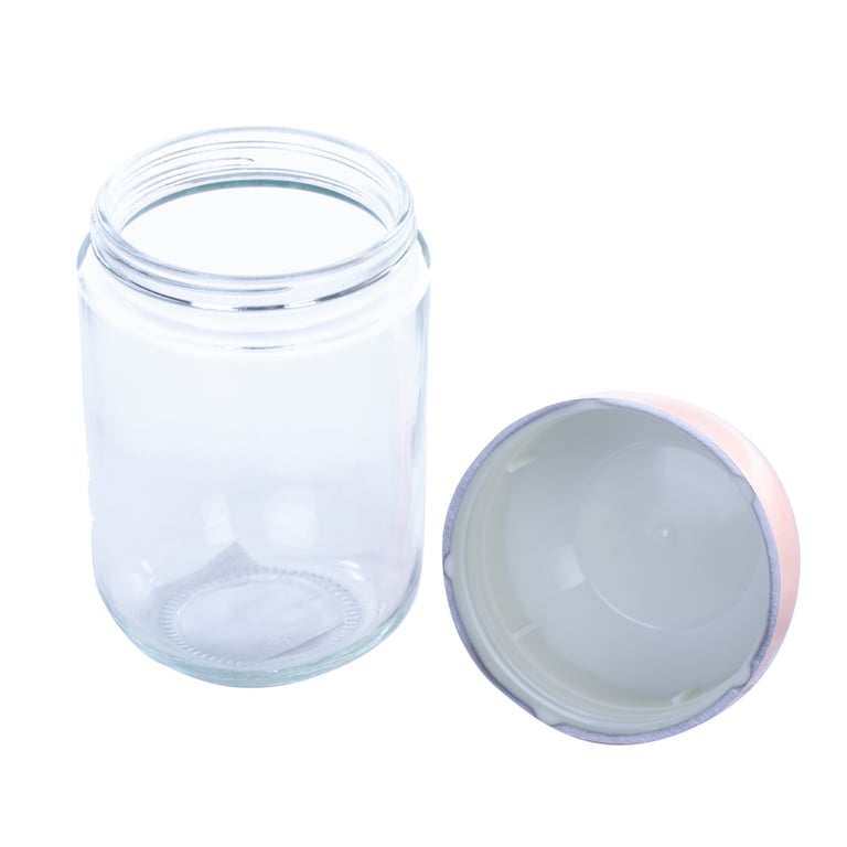 Composição POTE DE VIDRO E TAMPA EM PLÁSTICO.