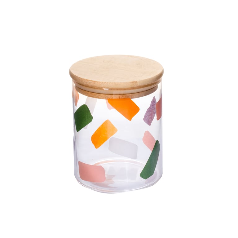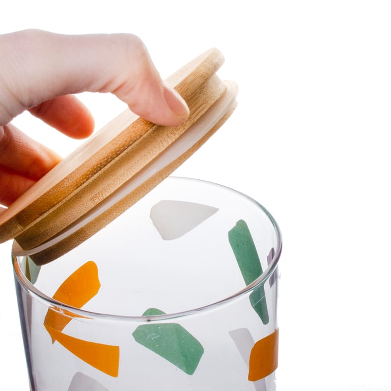 POTE VIDRO 730 ML HERMÉTICO TAMPA BAMBU DECORADO