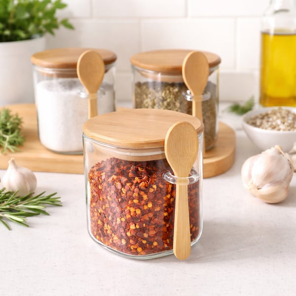 POTE VIDRO BOROSILICATO HERMÉTICO 500 ML COM COLHER E TAMPA BAMBU