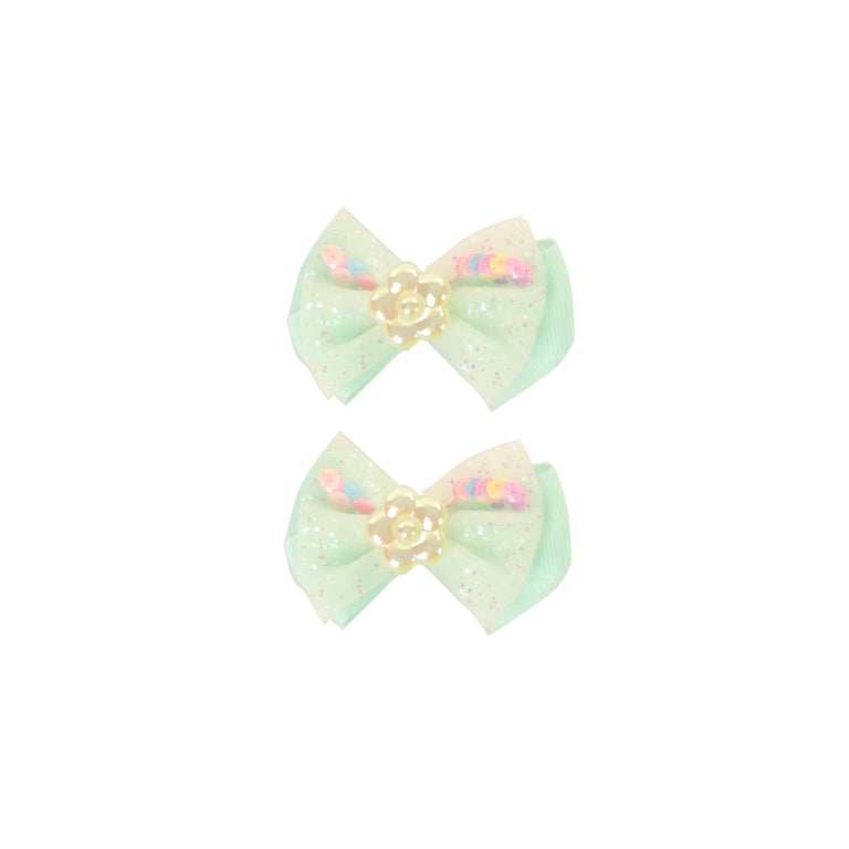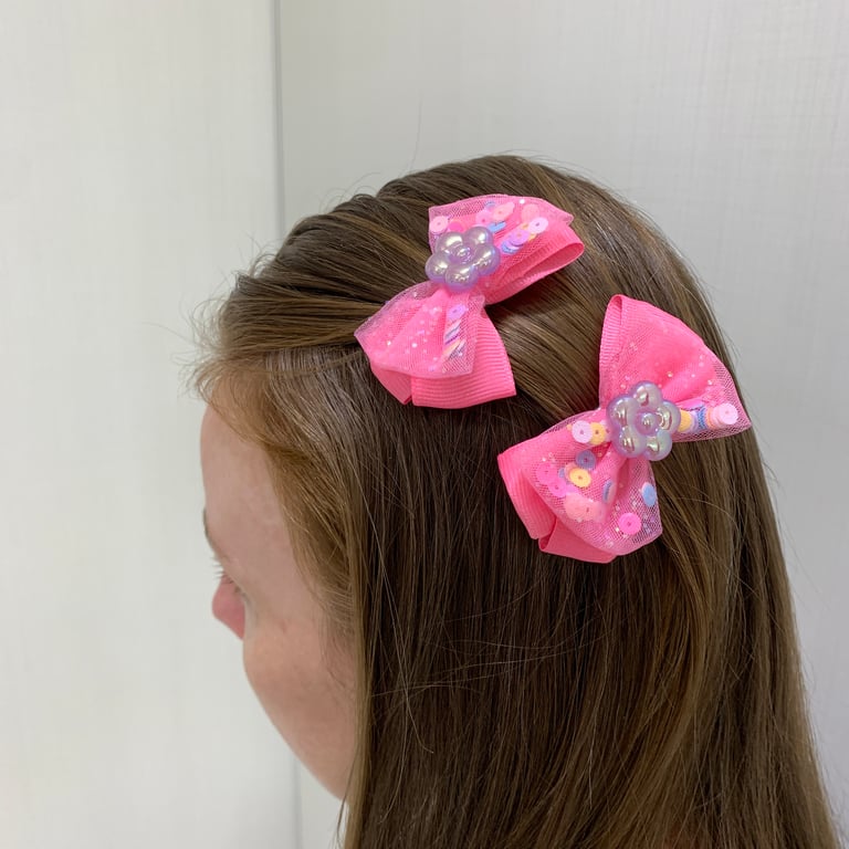 PRENDEDOR CABELO PRESILHA 2 PEÇAS 4X7 CM LAÇO COM FLOR E LANTEJOULAS