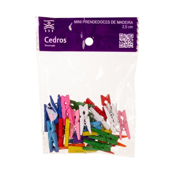 PRENDEDOR / GRAMPO MADEIRA 2,5 CM 30 PEÇAS COLORIDOS
