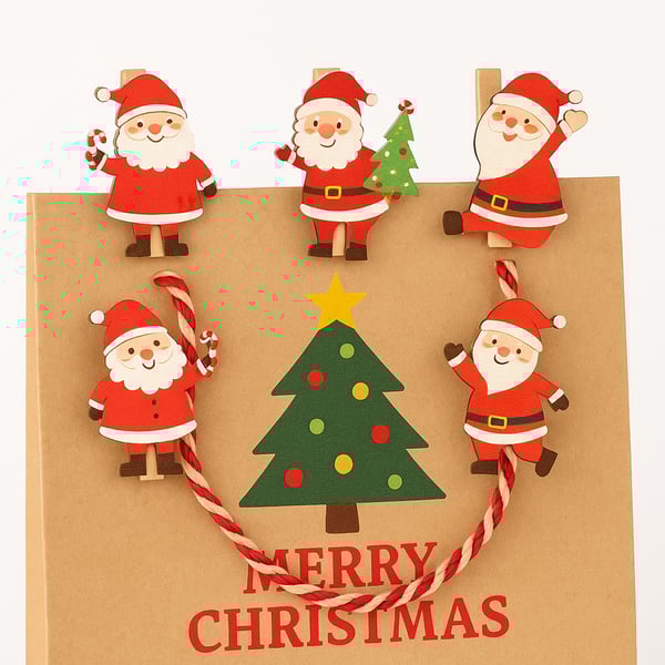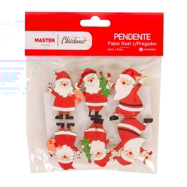 PRENDEDOR / GRAMPO MADEIRA 5 CM 6 PEÇAS PAPAI NOEL