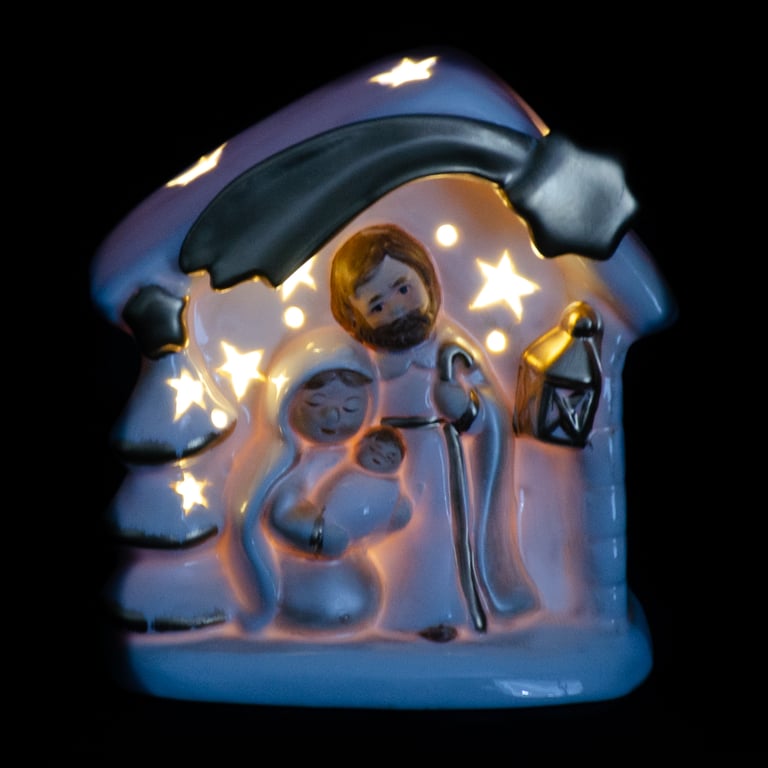 PRESÉPIO SAGRADA FAMÍLIA CERÂMICA 12X12X6 CM COM LUZES