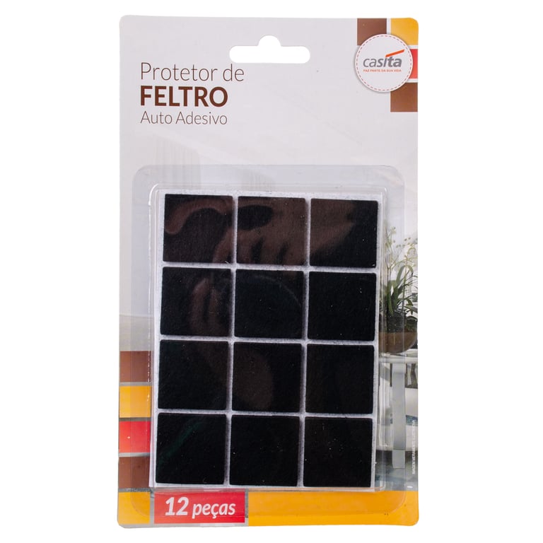 PROTETOR DE MÓVEIS 3 CM FELTRO 12 PEÇAS QUADRADO ADESIVO
