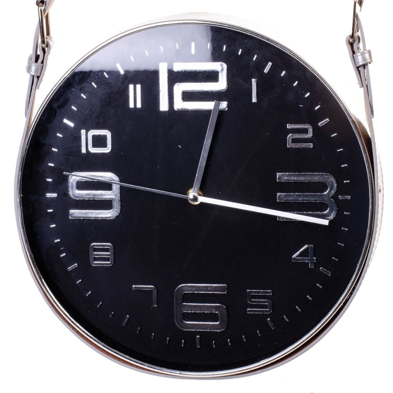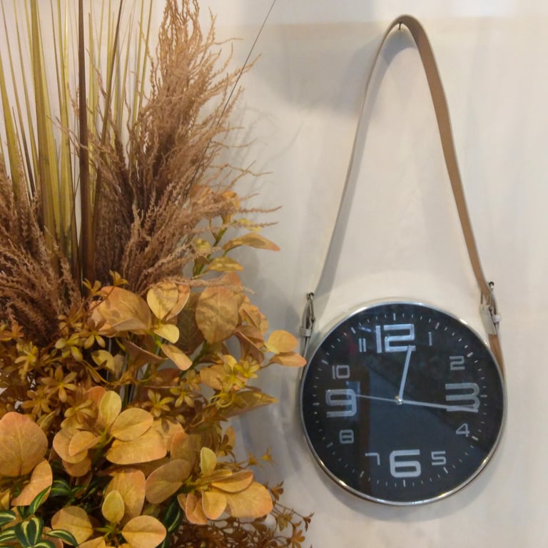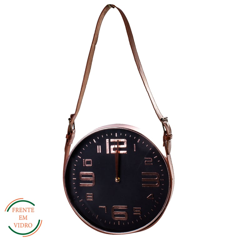 RELÓGIO PAREDE 30X6 CM CONTÍNUO COM ALÇA COURO FUNDO PRETO