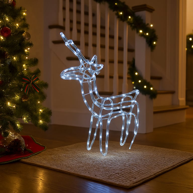 RENA DECORATIVA 144 LEDS 45X12X42 CM BRANCO FIXA COM MANGUEIRA LUMINOSA 220V