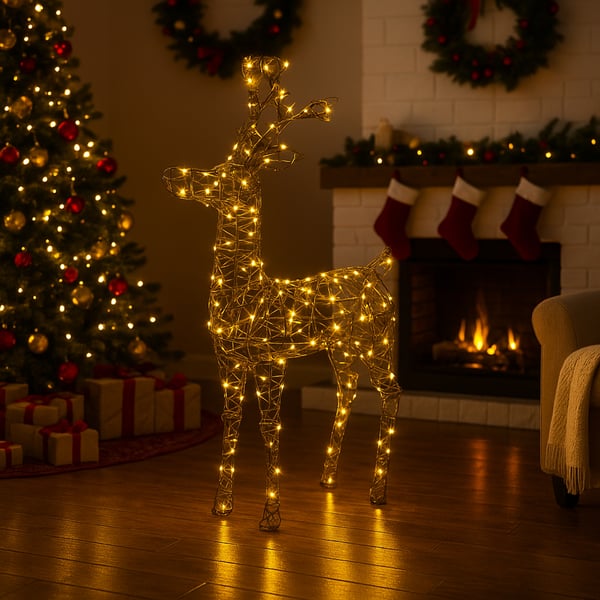 RENA DECORATIVA RATTAN BRANCO QUENTE FIXA 160 LEDS BRANCO QUENTE 98X18X57 CM BIVOLT